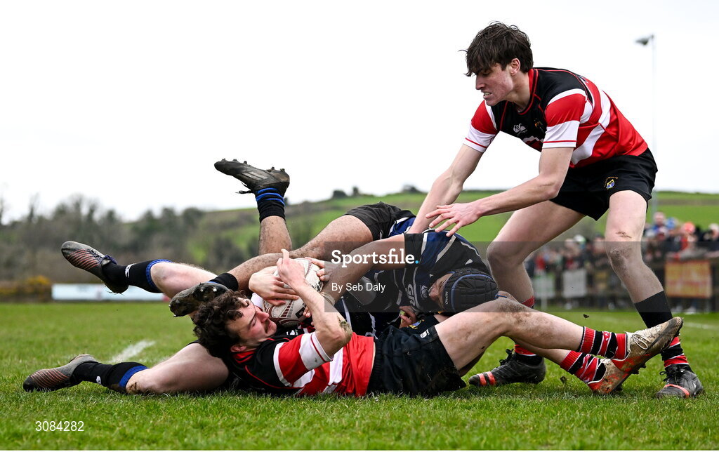 23 March 2025; Paddy McKenzie of Wicklow on his way to scoring his side's first try during the Bank of Ireland Provincial Towns Cup Round 3 match between Wicklow RFC and Wexford Wanderers RFC at Ashtown Lane in Wicklow. Photo by Seb Daly/Sportsfile