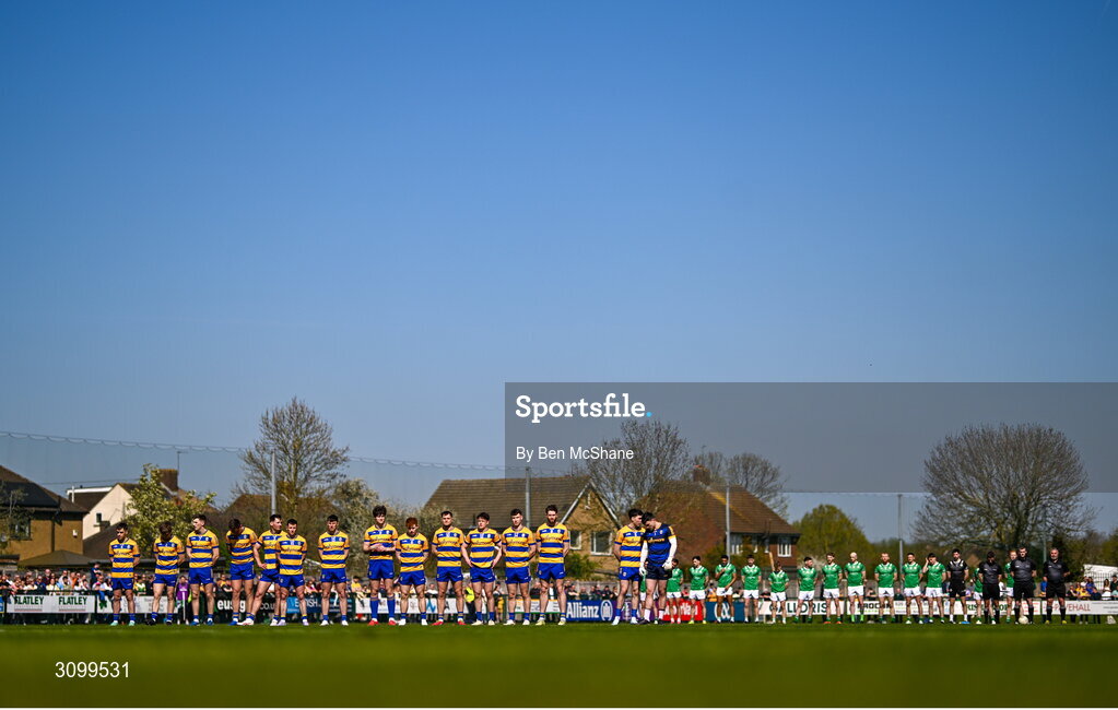 5 April 2025; Roscommon and London players stand for the playing of Amhrán na bhFiann before the Connacht GAA Football Senior Championship quarter-final match between London and Roscommon at McGovern Park in Ruislip, England. Photo by Ben McShane/Sportsfile