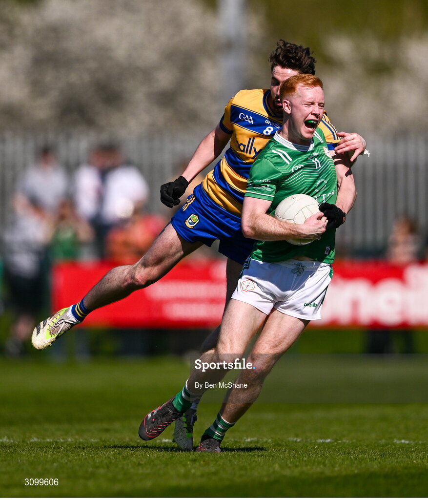 5 April 2025; Daniel Clarke of London is tackled by Eddie Nolan of Roscommon during the Connacht GAA Football Senior Championship quarter-final match between London and Roscommon at McGovern Park in Ruislip, England. Photo by Ben McShane/Sportsfile