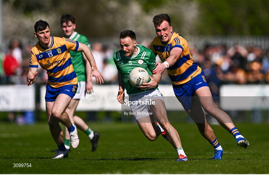 5 April 2025; Eoin Walsh of London is tackled by Enda Smith of Roscommon during the Connacht GAA Football Senior Championship quarter-final match between London and Roscommon at McGovern Park in Ruislip, England. Photo by Ben McShane/Sportsfile