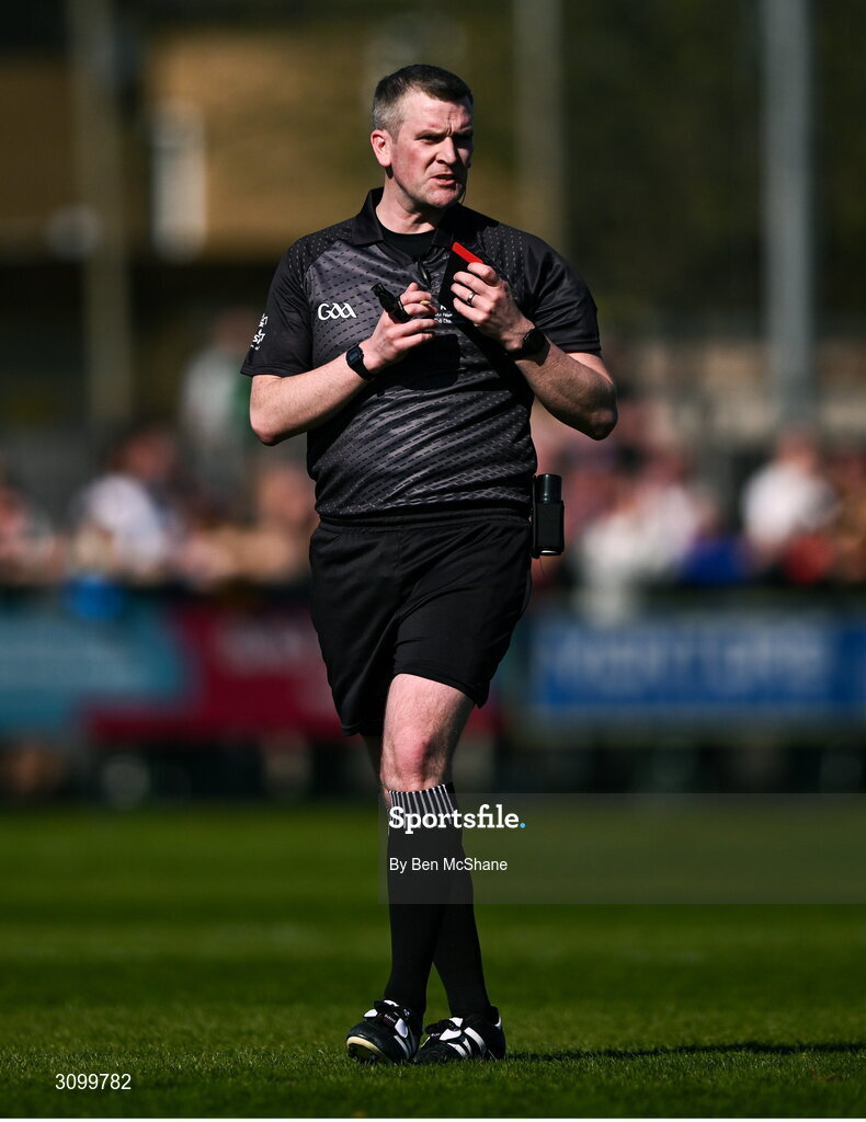 5 April 2025; Referee Thomas Murphy during the Connacht GAA Football Senior Championship quarter-final match between London and Roscommon at McGovern Park in Ruislip, England. Photo by Ben McShane/Sportsfile