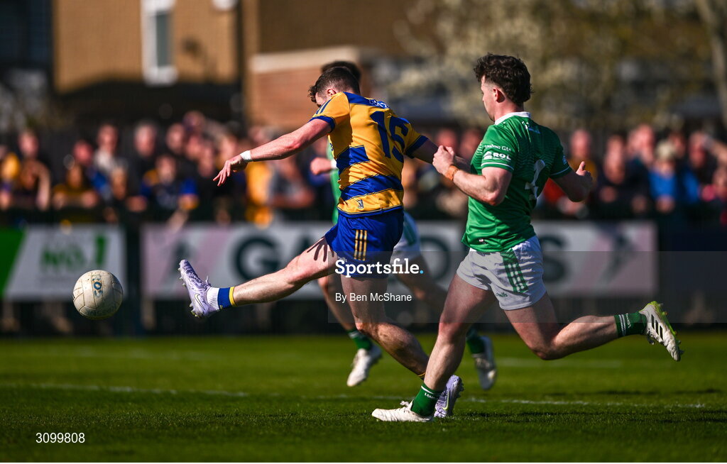 5 April 2025; Ciaráin Murtagh of Roscommon scores his side's second goal during the Connacht GAA Football Senior Championship quarter-final match between London and Roscommon at McGovern Park in Ruislip, England. Photo by Ben McShane/Sportsfile