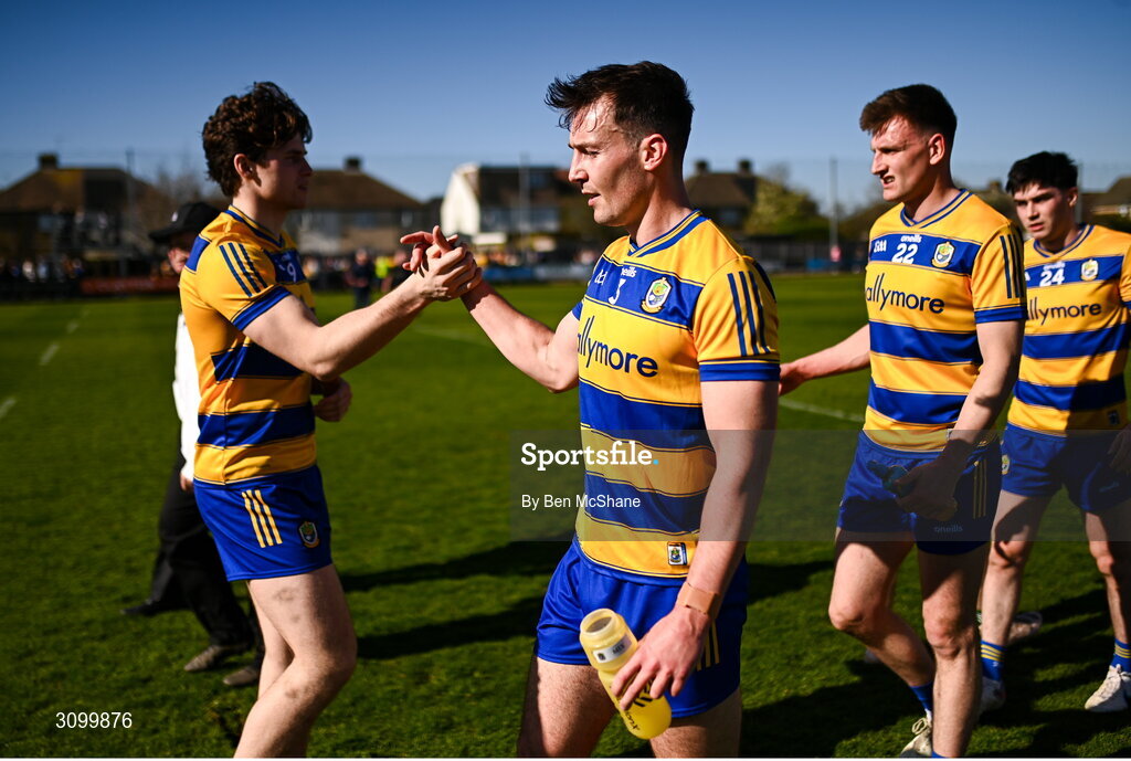 5 April 2025; Ruaidhrí Fallon, right, and Keith Doyle of Roscommon after their victory in the Connacht GAA Football Senior Championship quarter-final match between London and Roscommon at McGovern Park in Ruislip, England. Photo by Ben McShane/Sportsfile
