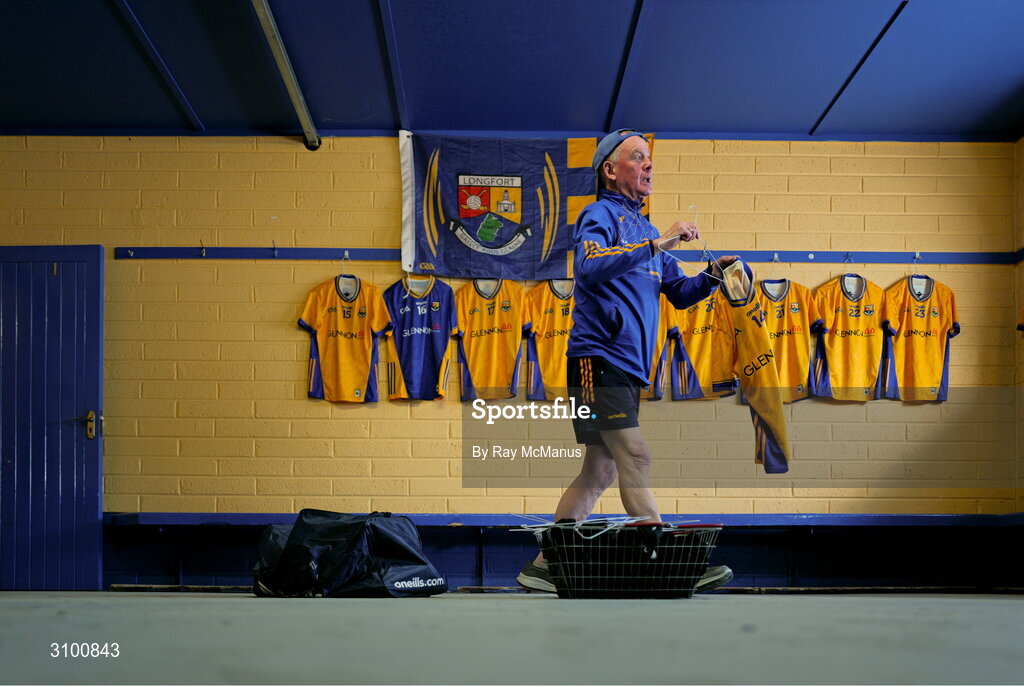 6 April 2025; Longford kitman, of twelve years, Danny O'Toole prepares the jerseys in advance of the Leinster GAA Football Senior Championship round one match between Longford and Wicklow at Glennon Brothers Pearse Park in Longford. Photo by Ray McManus/Sportsfile