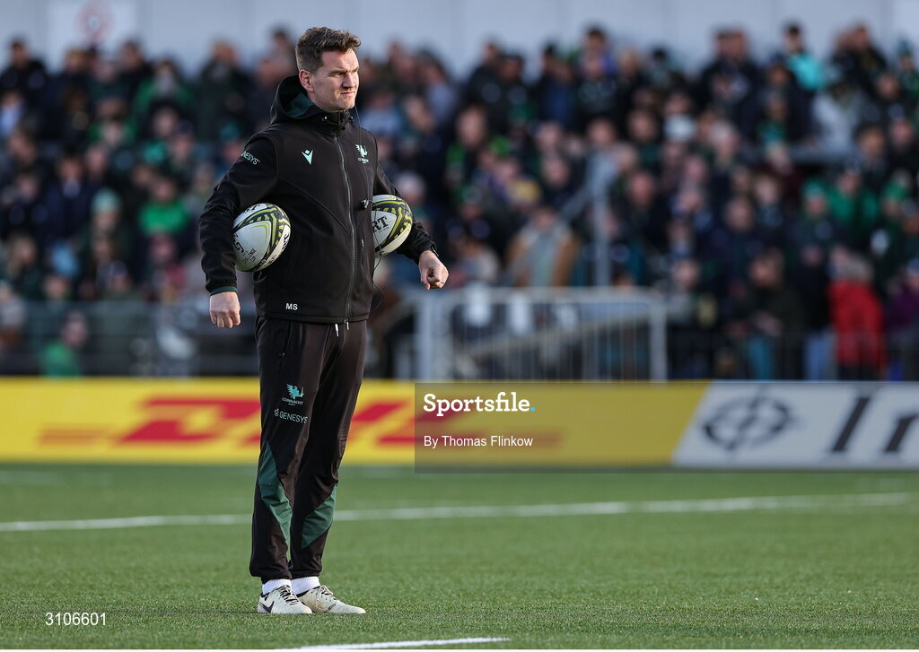 12 April 2025; Connacht attack coach Mark Sexton before the EPCR Challenge Cup quarter-final match between Connacht and Racing 92 at Dexcom Stadium in Galway. Photo by Thomas Flinkow/Sportsfile