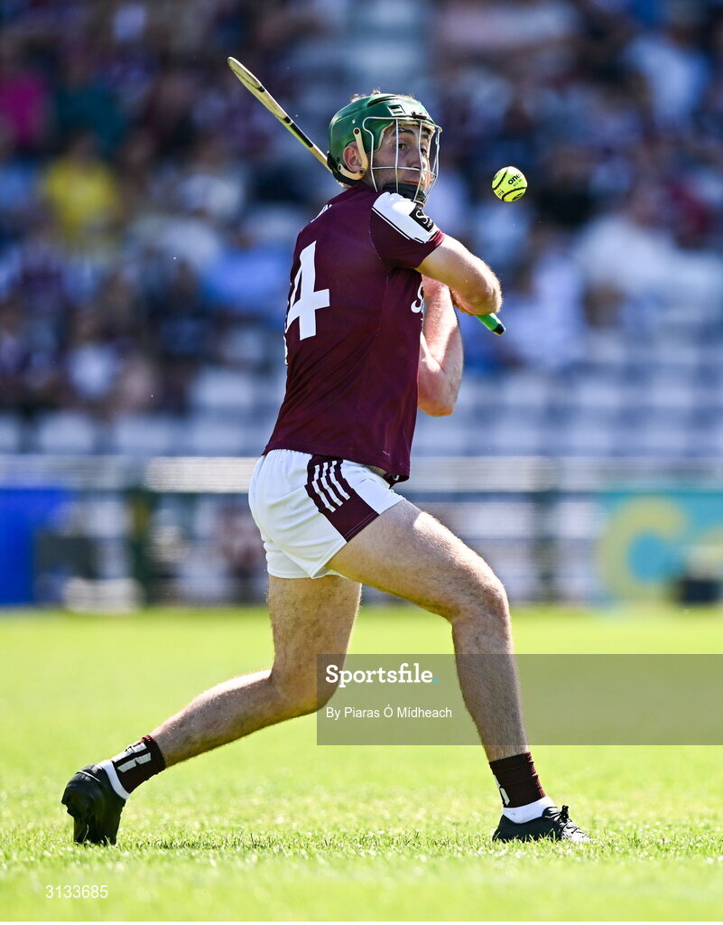 17 May 2025; Brian Concannon of Galway scores his side's first goal during the Leinster GAA Hurling Senior Championship Round 4 match between Galway and Antrim at Pearse Stadium in Galway. Photo by Piaras Ó Mídheach/Sportsfile