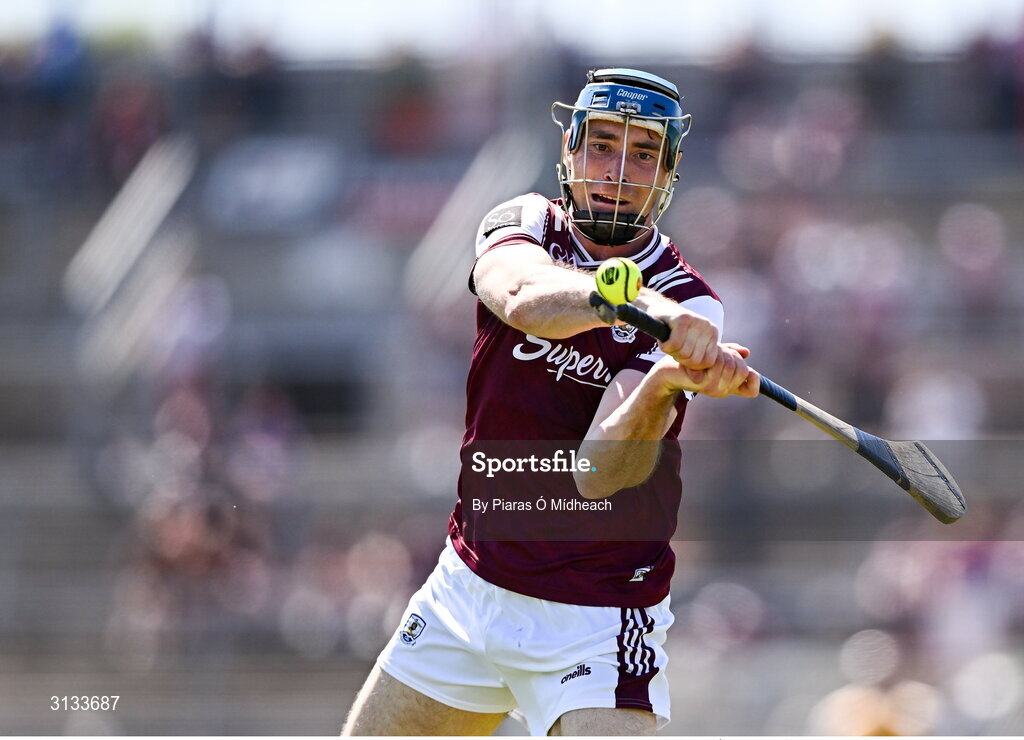 17 May 2025; Conor Cooney of Galway during the Leinster GAA Hurling Senior Championship Round 4 match between Galway and Antrim at Pearse Stadium in Galway. Photo by Piaras Ó Mídheach/Sportsfile