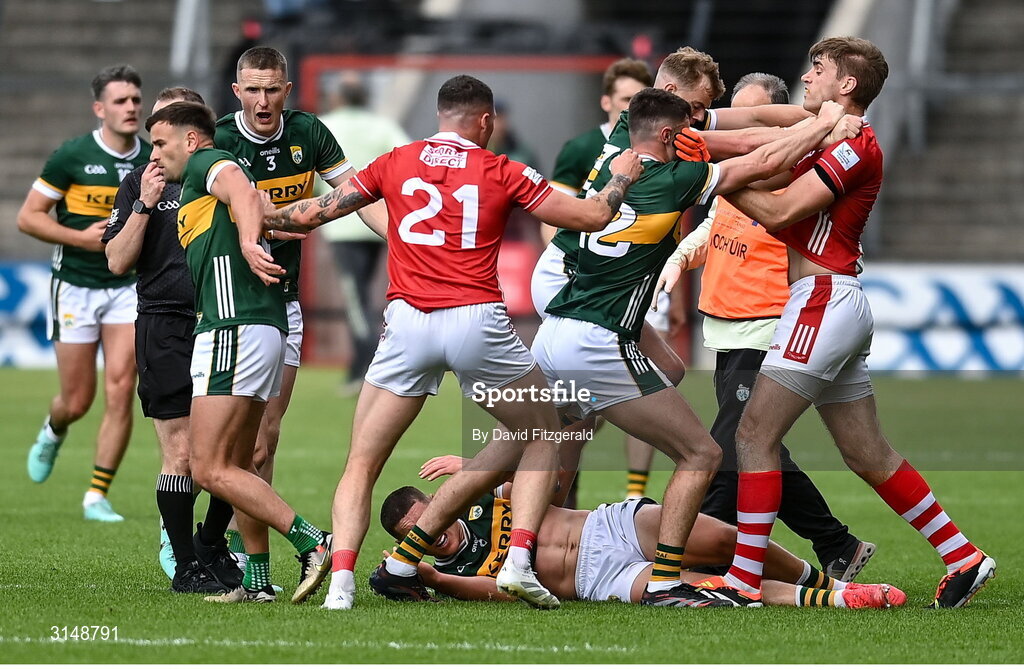 31 May 2025; Players from both sides tussle at half time during the GAA Football All-Ireland Senior Championship Round 2 match between Cork and Kerry at SuperValu Páirc Uí Chaoimh in Cork. Photo by David Fitzgerald/Sportsfile