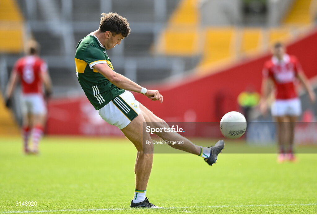 31 May 2025; David Clifford of Kerry kicks a two point score during the GAA Football All-Ireland Senior Championship Round 2 match between Cork and Kerry at SuperValu Páirc Uí Chaoimh in Cork. Photo by David Fitzgerald/Sportsfile