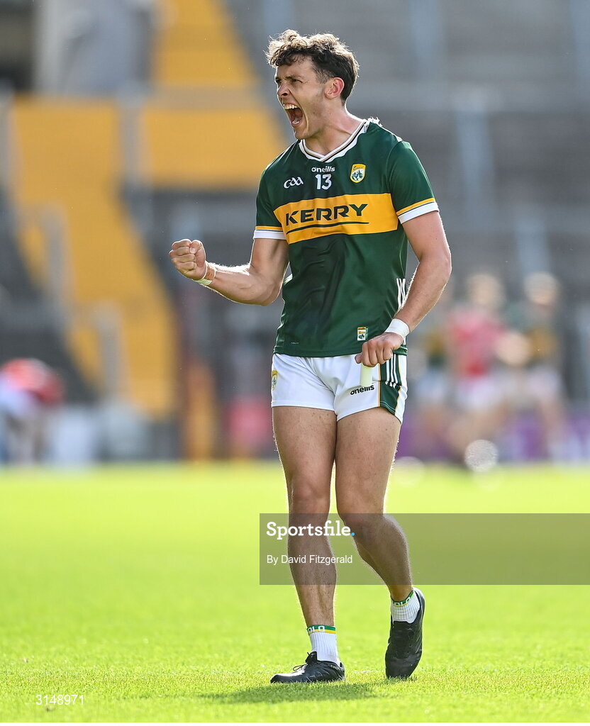 31 May 2025; David Clifford of Kerry celebrates during the GAA Football All-Ireland Senior Championship Round 2 match between Cork and Kerry at SuperValu Páirc Uí Chaoimh in Cork. Photo by David Fitzgerald/Sportsfile