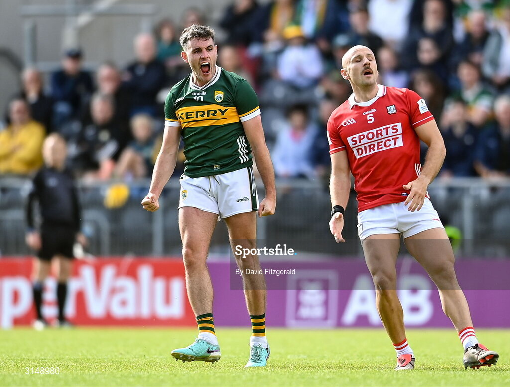 31 May 2025; Graham O'Sullivan of Kerry celebrates winning a free during the GAA Football All-Ireland Senior Championship Round 2 match between Cork and Kerry at SuperValu Páirc Uí Chaoimh in Cork. Photo by David Fitzgerald/Sportsfile