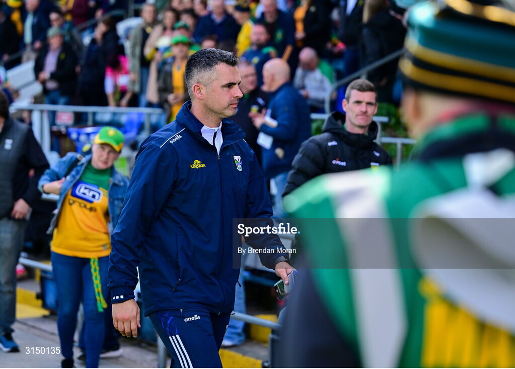 1 June 2025; Cavan manager Raymond Galligan leaves the pitch after the GAA Football All-Ireland Senior Championship Round 2 match between Cavan and Donegal at Kingspan Breffni in Cavan. Photo by Brendan Moran/Sportsfile