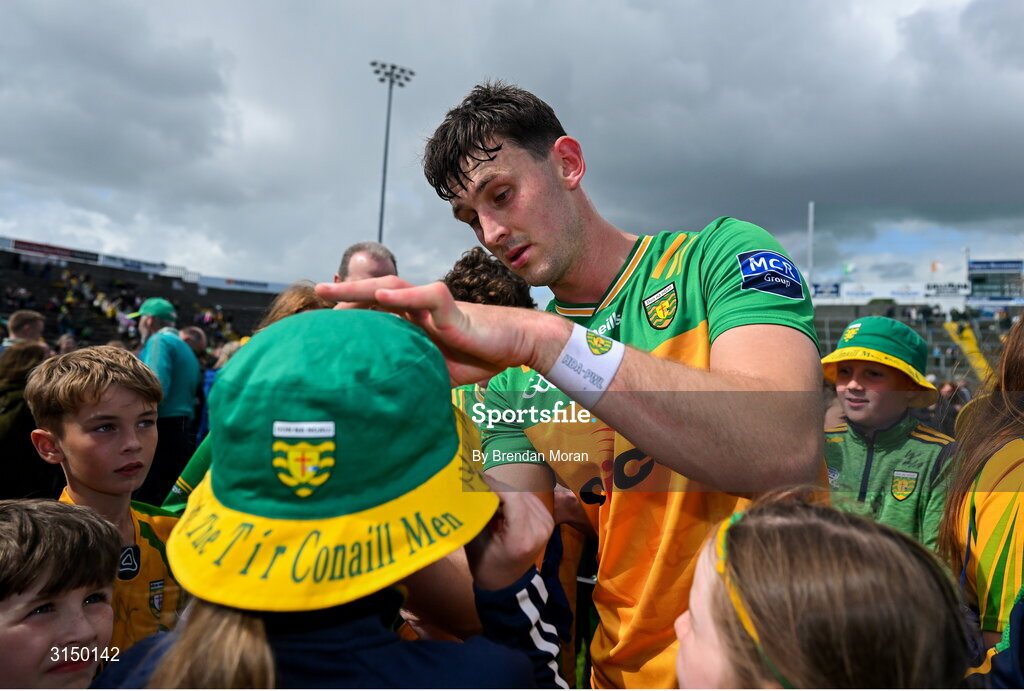 1 June 2025; Michael Langan of Donegal signs autographs after the GAA Football All-Ireland Senior Championship Round 2 match between Cavan and Donegal at Kingspan Breffni in Cavan. Photo by Brendan Moran/Sportsfile