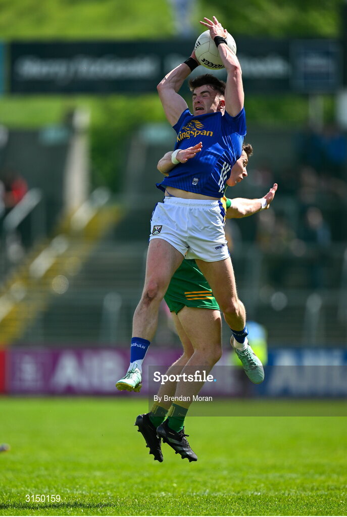 1 June 2025; Cian Reilly of Cavan fields a kickout ahead of Jamie Brennan of Donegal during the GAA Football All-Ireland Senior Championship Round 2 match between Cavan and Donegal at Kingspan Breffni in Cavan. Photo by Brendan Moran/Sportsfile