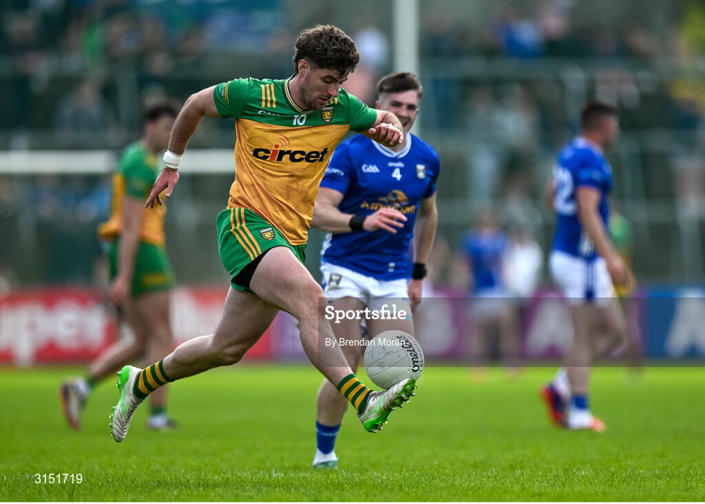 1 June 2025; Dáire Ó Baoill of Donegal in action against Cian Reilly of Cavan during the GAA Football All-Ireland Senior Championship Round 2 match between Cavan and Donegal at Kingspan Breffni in Cavan. Photo by Brendan Moran/Sportsfile