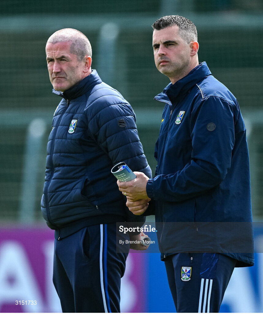1 June 2025; Cavan manager Raymond Galligan, right, and forwards coach Stephen O'Neill before the GAA Football All-Ireland Senior Championship Round 2 match between Cavan and Donegal at Kingspan Breffni in Cavan. Photo by Brendan Moran/Sportsfile