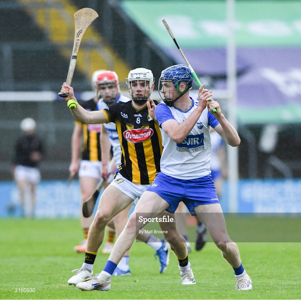 14 June 2025; Tommy Kennedy of Waterford in action against Diarmuid Behan of Kilkenny during the Electric Ireland GAA All-Ireland Minor Championship semi-final match between Kilkenny and Waterford Chadwicks Wexford Park in Wexford. Photo by Matt Browne/Sportsfile