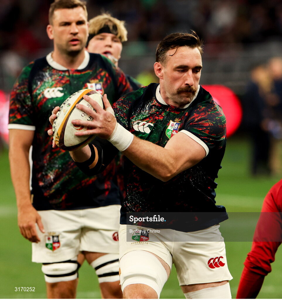 28 June 2025; Jack Conan of British & Irish Lions warms up before the tour match between Western Force and the British & Irish Lions at Optus Stadium in Perth, Australia. Photo by Steve Christo/Sportsfile