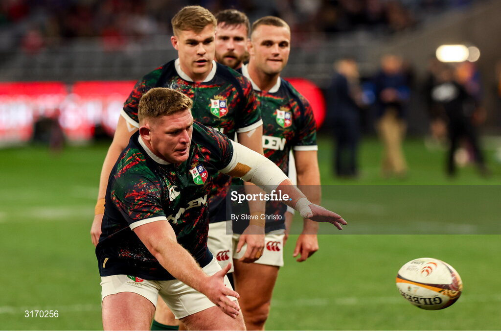28 June 2025; Tadhg Furlong of British & Irish Lions warms up before the tour match between Western Force and the British & Irish Lions at Optus Stadium in Perth, Australia. Photo by Steve Christo/Sportsfile