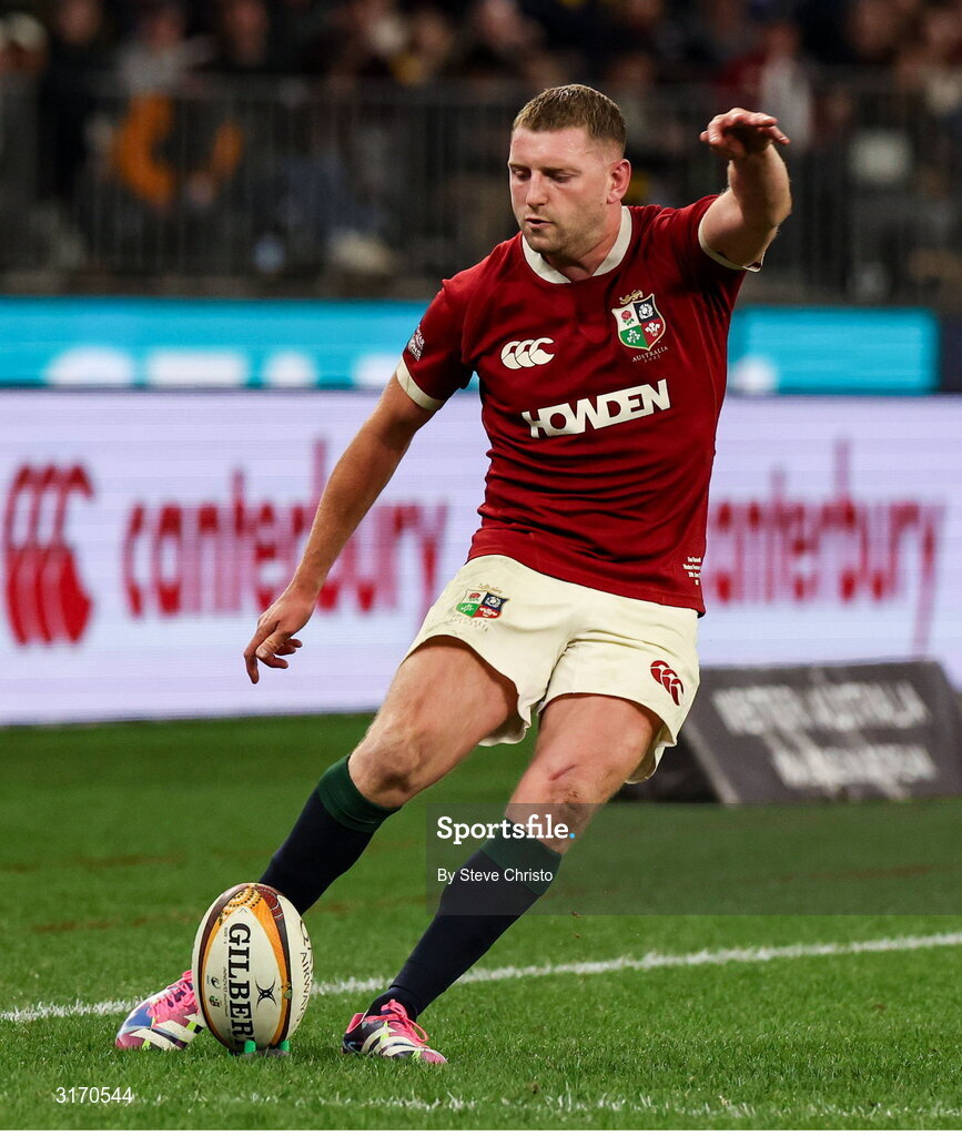 28 June 2025; Finn Russell of British & Irish Lions kicks a conversion during the tour match between Western Force and the British & Irish Lions at Optus Stadium in Perth, Australia. Photo by Steve Christo/Sportsfile