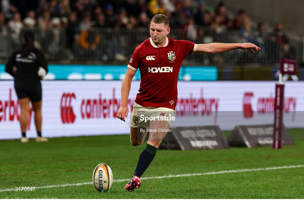 28 June 2025; Finn Russell of British & Irish Lions kicks a conversion during the tour match between Western Force and the British & Irish Lions at Optus Stadium in Perth, Australia. Photo by Steve Christo/Sportsfile