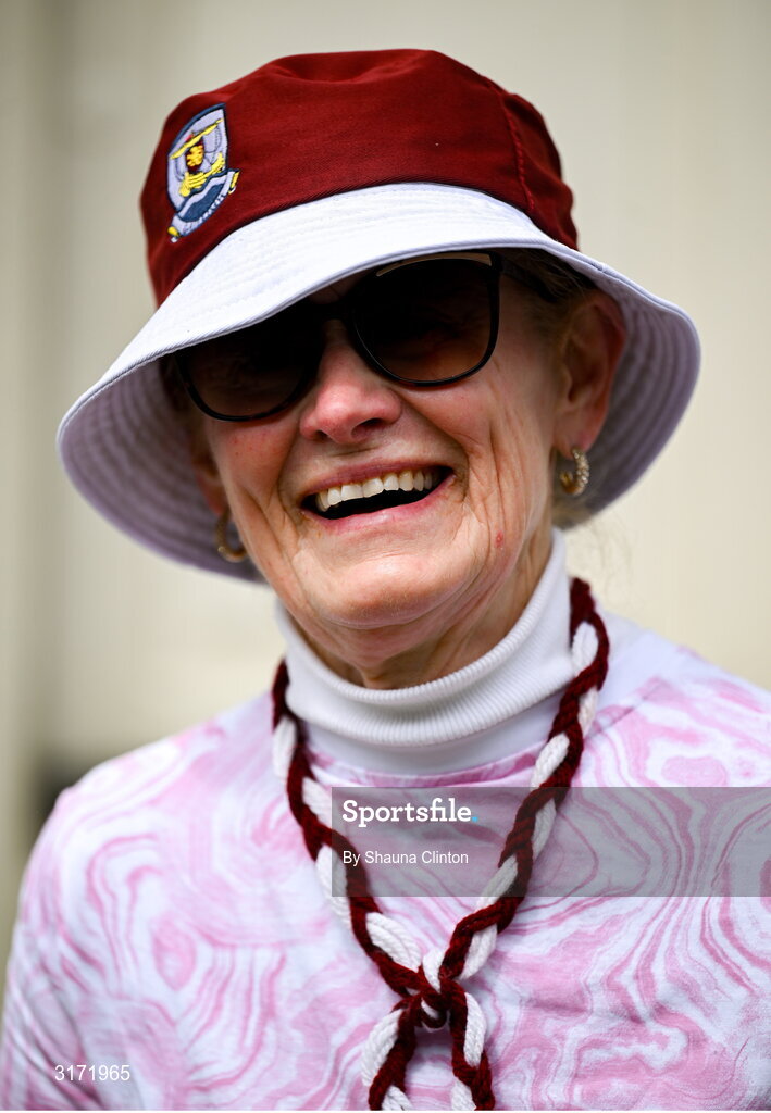 29 June 2025; Galway supporter Carmel Stenson, from Renmore in Galway, before the GAA Football All-Ireland Senior Championship quarter-final match between Meath and Galway at Croke Park in Dublin. Photo by Shauna Clinton/Sportsfile