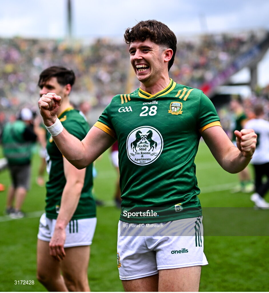 29 June 2025; Keith Curtis of Meath celebrates after the GAA Football All-Ireland Senior Championship quarter-final match between Meath and Galway at Croke Park in Dublin. Photo by Piaras Ó Mídheach/Sportsfile
