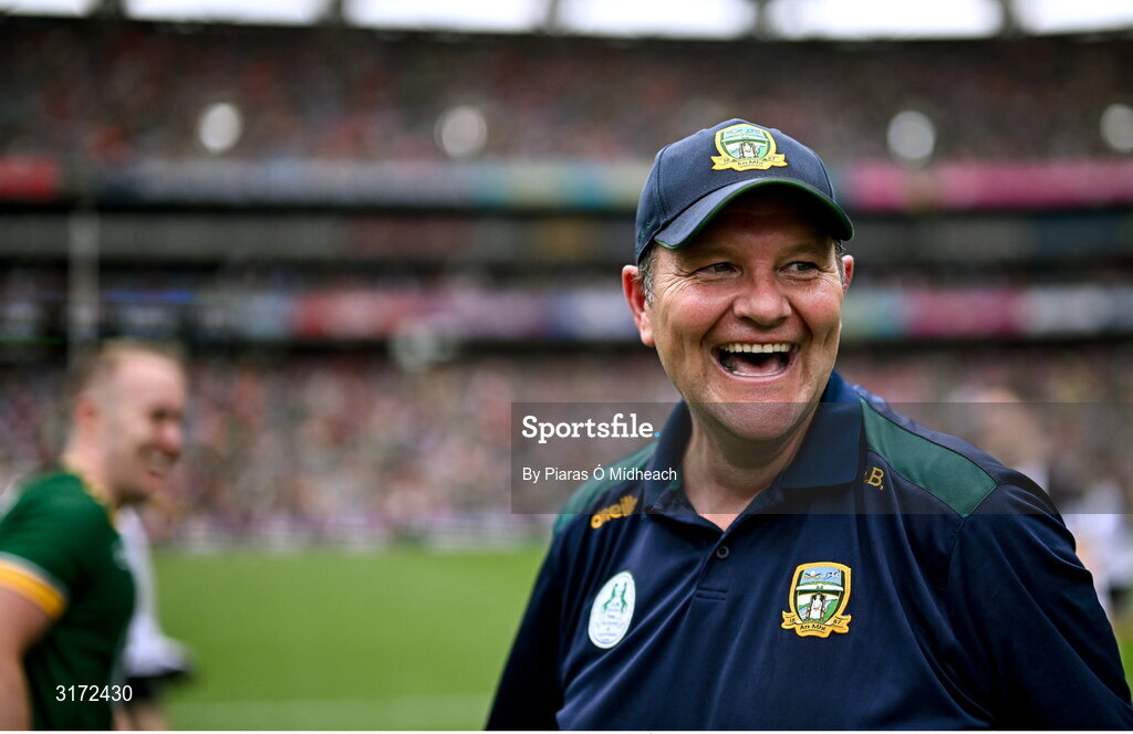 29 June 2025; Meath manager Robbie Brennan celebrates after the GAA Football All-Ireland Senior Championship quarter-final match between Meath and Galway at Croke Park in Dublin. Photo by Piaras Ó Mídheach/Sportsfile