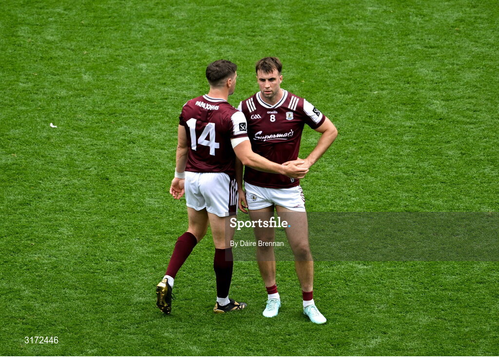 29 June 2025; Dejected Galway players, Shane Walsh, left and Paul Conroy, after the GAA Football All-Ireland Senior Championship quarter-final match between Meath and Galway at Croke Park in Dublin. Photo by Daire Brennan/Sportsfile