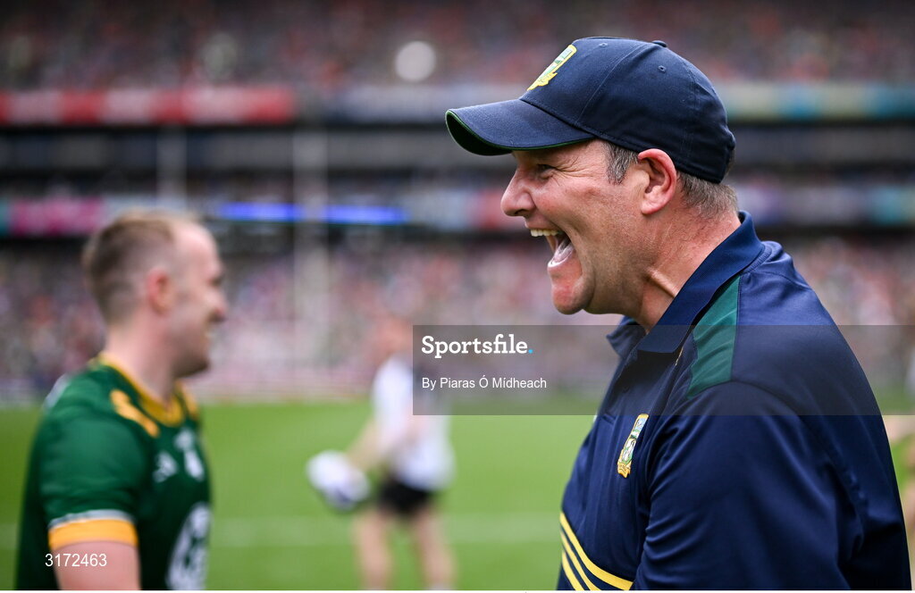 29 June 2025; Meath manager Robbie Brennan celebrates after the GAA Football All-Ireland Senior Championship quarter-final match between Meath and Galway at Croke Park in Dublin. Photo by Piaras Ó Mídheach/Sportsfile