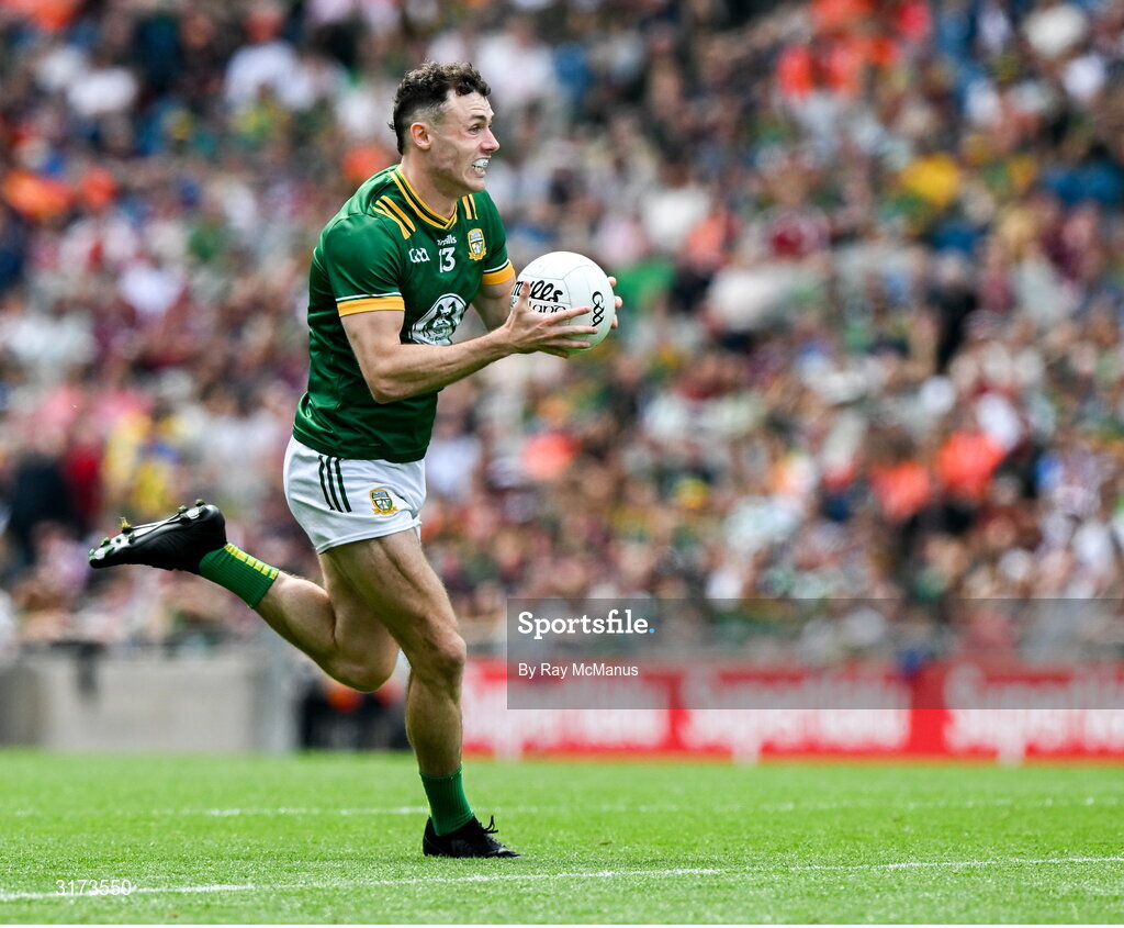 29 June 2025; Jordan Morris of Meath during the GAA Football All-Ireland Senior Championship quarter-final match between Meath and Galway at Croke Park in Dublin. Photo by Ray McManus/Sportsfile