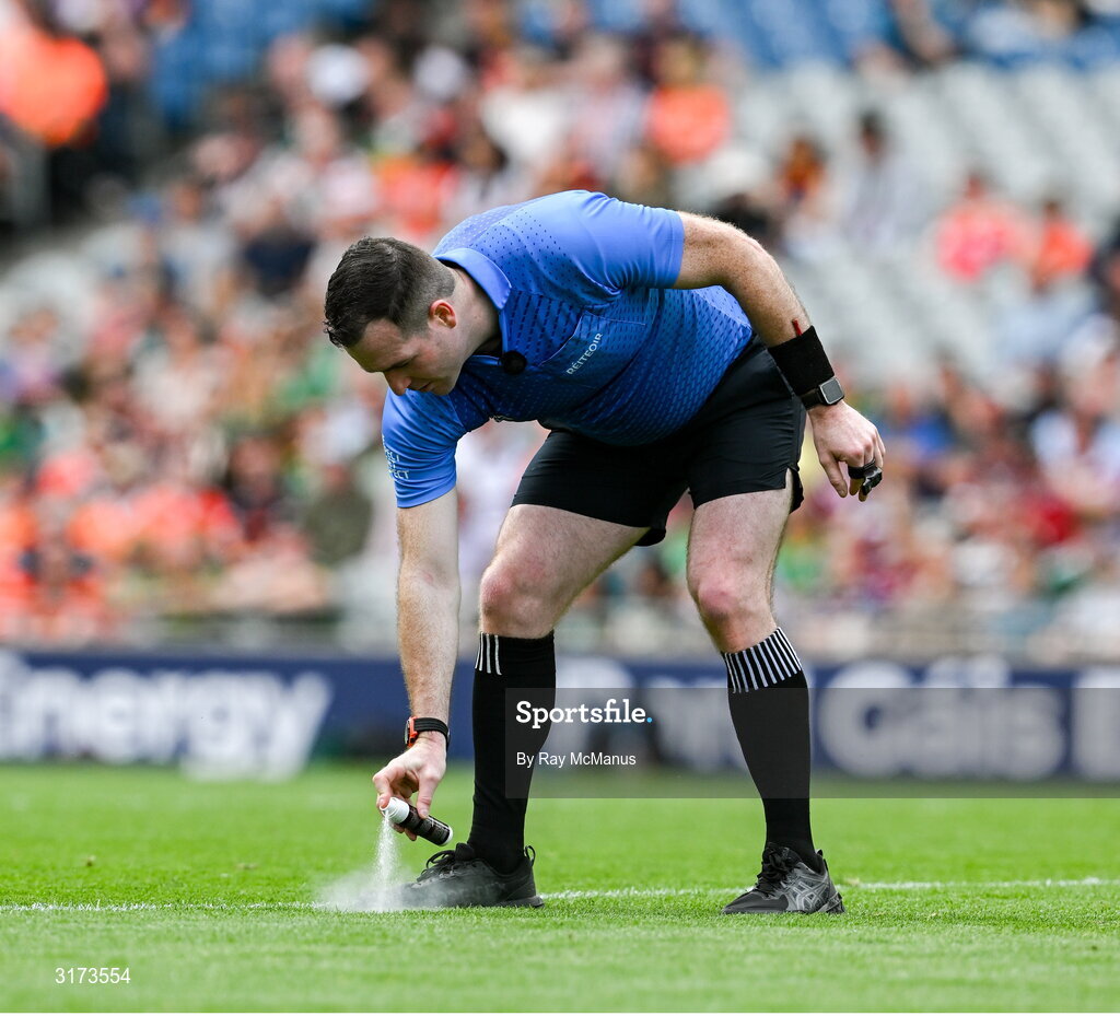 29 June 2025; Referee Martin McNally during the GAA Football All-Ireland Senior Championship quarter-final match between Meath and Galway at Croke Park in Dublin. Photo by Ray McManus/Sportsfile