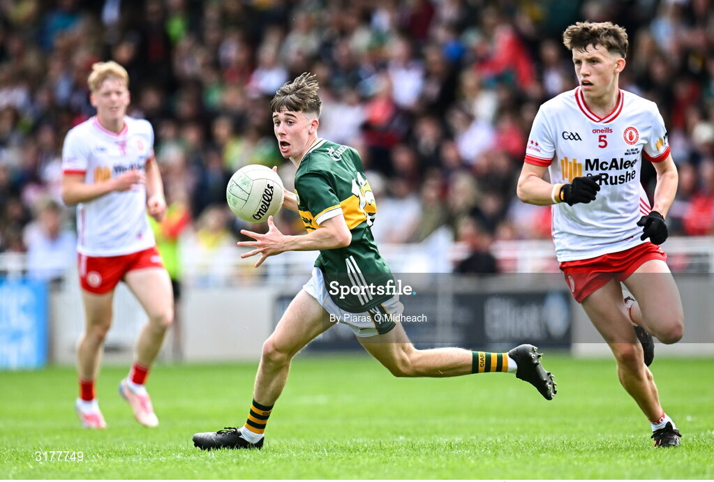 6 July 2025; Tadhg O’Connell of Kerry during the Electric Ireland GAA Football All-Ireland Minor Championship final match between Kerry and Tyrone at Cedral St Conleth's Park in Newbridge, Kildare. Photo by Piaras Ó Mídheach/Sportsfile