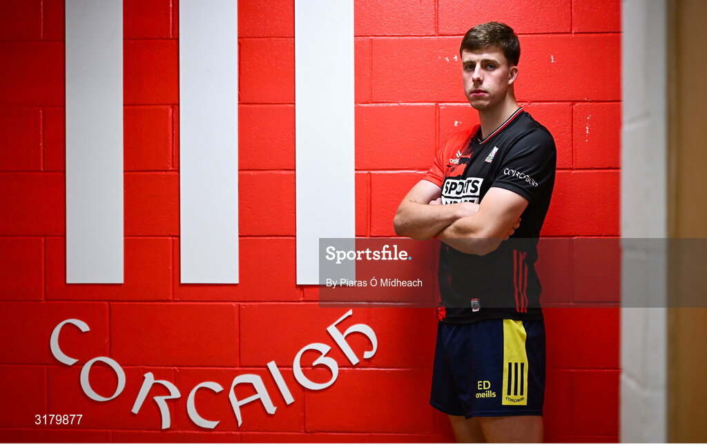7 July 2025; Cork captain Robert Downey poses for a portrait during a Cork Hurling media conference at SuperValu Páirc Uí Chaoimh in Cork ahead of the GAA Hurling All-Ireland Senior Championship Final. Photo by Piaras Ó Mídheach/Sportsfile