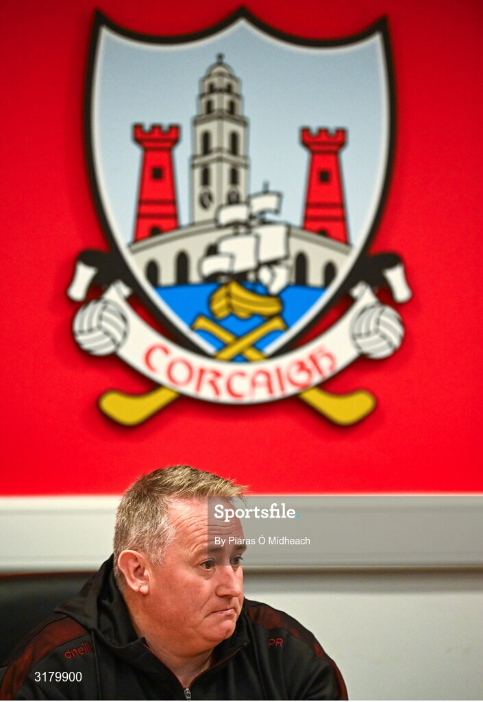 7 July 2025; Cork manager Pat Ryan is interviewed during a Cork Hurling media conference at SuperValu Páirc Uí Chaoimh in Cork ahead of the GAA Hurling All-Ireland Senior Championship Final. Photo by Piaras Ó Mídheach/Sportsfile