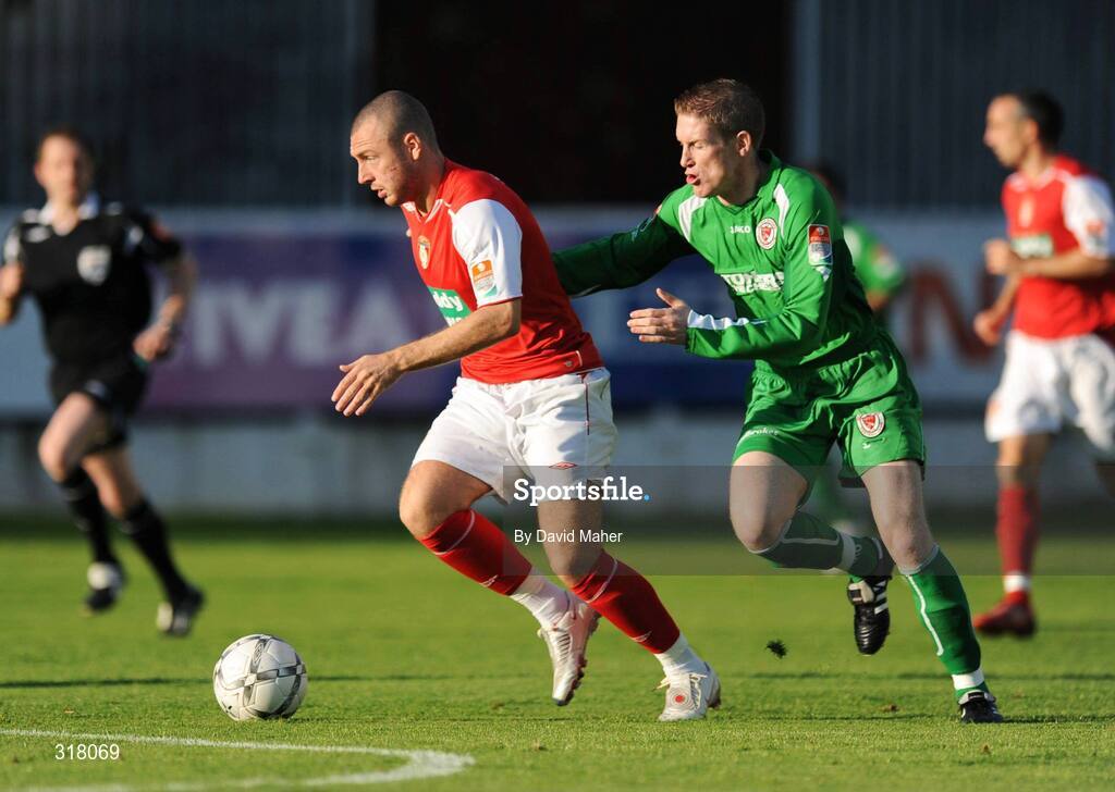 24 August 2008; Mark Quigley, St. Patrick's Athletic, in action against Conor O'Grady, Sligo Rovers. eircom League of Ireland Premier Division, St. Patrick's Athletic v Sligo Rovers, Richmond Park, Dublin. Picture credit: David Maher / SPORTSFILE