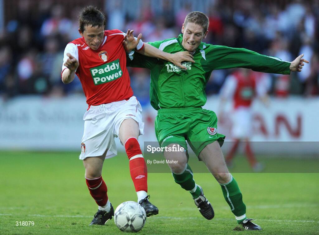 24 August 2008; Bobby Ryan, St. Patrick's Athletic, in action against Conor O'Grady, Sligo Rovers. eircom League of Ireland Premier Division, St. Patrick's Athletic v Sligo Rovers, Richmond Park, Dublin. Picture credit: David Maher / SPORTSFILE