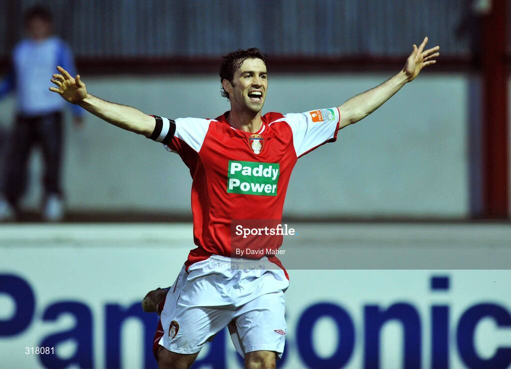 24 August 2008; Damien Lynch, St. Patrick's Athletic, celebrates after scoring the winning goal in the dying moments of the game. eircom League of Ireland, St. Patrick's Athletic v Sligo Rovers, Richmond Park, Dublin. Picture credit: David Maher / SPORTSFILE