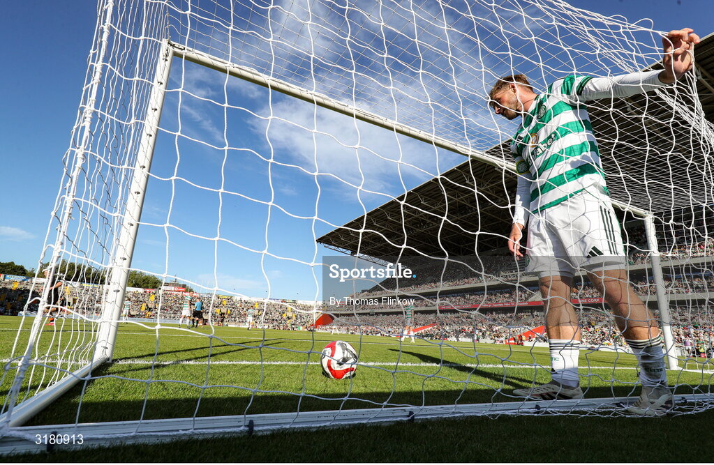 8 July 2025; Stephen Welsh of Celtic reacts after conceding their side's first goal during the Cork Super Cup match between Cork City and Celtic FC at SuperValu Páirc Uí Chaoimh in Cork. Photo by Thomas Flinkow/Sportsfile