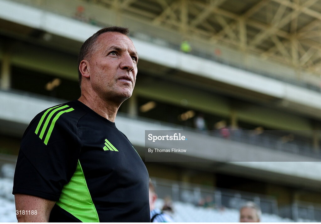 8 July 2025; Celtic manager Brendan Rogers before the Cork Super Cup match between Cork City and Celtic FC at SuperValu Páirc Uí Chaoimh in Cork. Photo by Thomas Flinkow/Sportsfile
