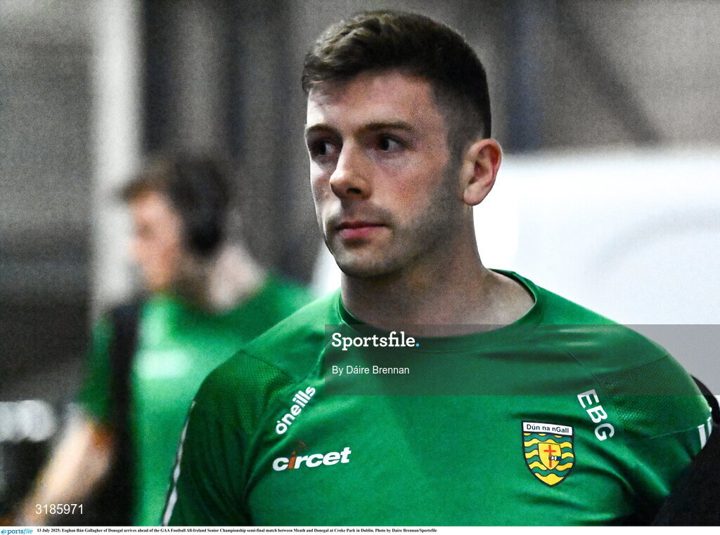 13 July 2025; Eoghan Bán Gallagher of Donegal arrives ahead of the GAA Football All-Ireland Senior Championship semi-final match between Meath and Donegal at Croke Park in Dublin. Photo by Daire Brennan/Sportsfile