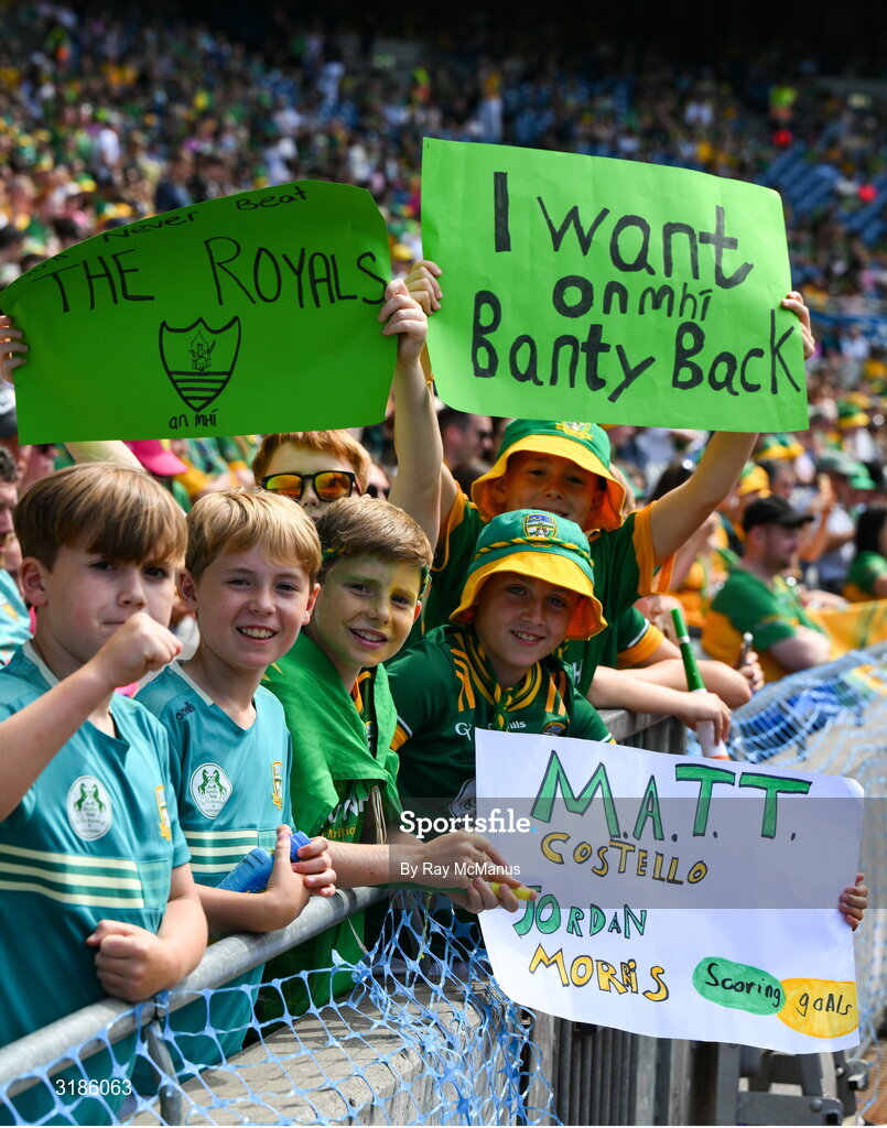 13 July 2025; Young Meath supporters before the GAA Football All-Ireland Senior Championship semi-final match between Meath and Donegal at Croke Park in Dublin. Photo by Ray McManus/Sportsfile