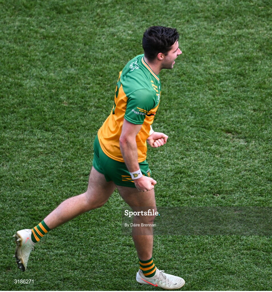 13 July 2025; Brendan McCole of Donegal celebrates after the GAA Football All-Ireland Senior Championship semi-final match between Meath and Donegal at Croke Park in Dublin. Photo by Daire Brennan/Sportsfile