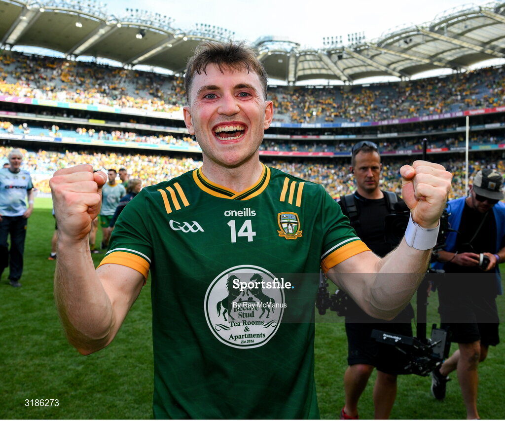 13 July 2025; Shane O'Donnell of Donegal, wearing a Meath jersey, after the GAA Football All-Ireland Senior Championship semi-final match between Meath and Donegal at Croke Park in Dublin. Photo by Ray McManus/Sportsfile