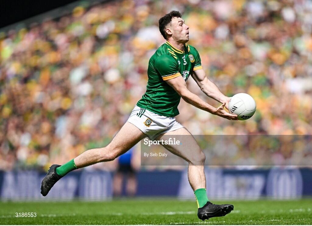 13 July 2025; Jordan Morris of Meath during the GAA Football All-Ireland Senior Championship semi-final match between Meath and Donegal at Croke Park in Dublin. Photo by Seb Daly/Sportsfile