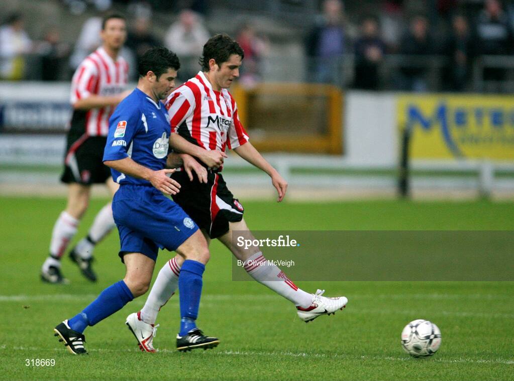 29 August 2008; Ruaidhri Higgins, Derry City, in action against Davy Byrne, Finn Harps. eircom league Premier Division, Derry City v Finn Harps, Brandywell, Derry. Picture credit: Oliver McVeigh / SPORTSFILE