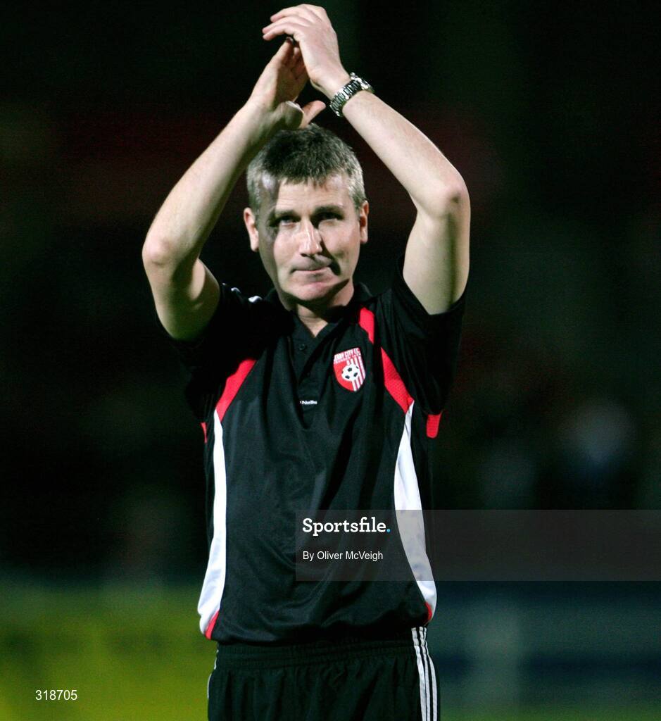 29 August 2008; Derry City manager, Stephen Kenny, applauds the supporters at the end of the game. eircom league Premier Division, Derry City v Finn Harps, Brandywell, Derry. Picture credit: Oliver McVeigh / SPORTSFILE