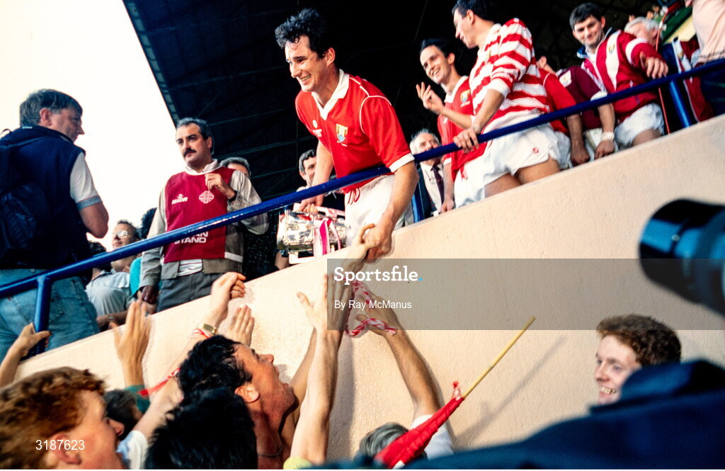 2 September 1990; Cork captain Tomás Mulcahy shakes hands as he carries the Liam MacCarthy Cup after the All-Ireland Senior Hurling Championship Final match between Cork and Galway at Croke Park in Dublin. Photo by Ray McManus/Sportsfile