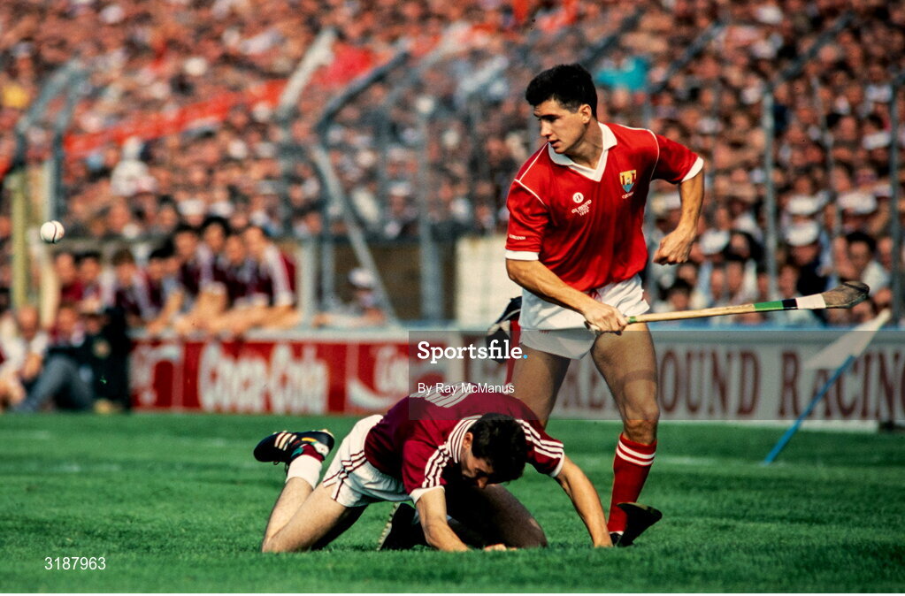 2 September 1990; John Fitzgibbon of Cork in action against Michael Coleman of Galway during the All-Ireland Senior Hurling Championship Final match between Cork and Galway at Croke Park in Dublin. Photo by Ray McManus/Sportsfile