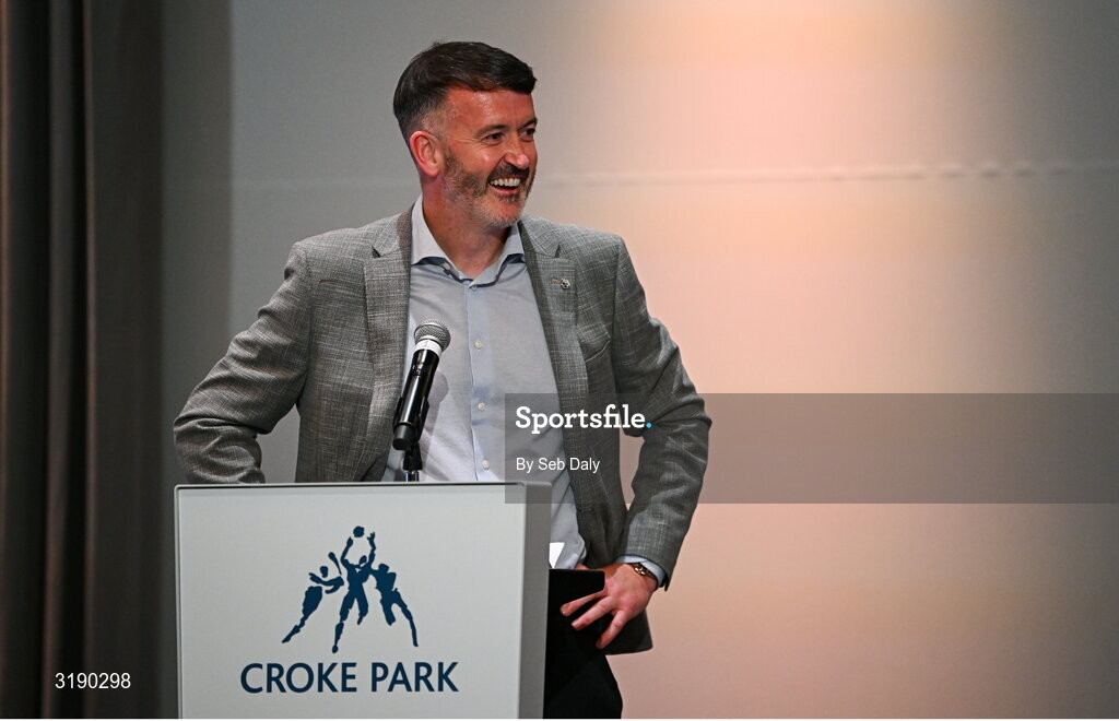 18 July 2025; GPA president Dónal Óg Cusack during the GPA Hurling and Camogie Legends Lunch at Croke Park in Dublin. Photo by Seb Daly/Sportsfile